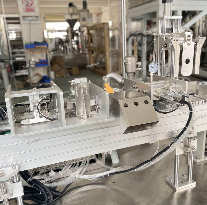 Bộ phận của máy được phát triển đặc biệt để đóng gói túi nhỏ, Máy này có thể hoàn thành độc lập việc tạo túi, làm đầy (tùy chọn làm đầy hoặc xả khí), niêm phong (đục lỗ tùy chọn) in mã và đếm túi, v.v. thiết bị. Khung máy và bộ phận tiếp xúc vật liệu được sản xuất bởi SUS304. PLC và màn hình cảm ứng được sử dụng bởi thương hiệu Siemens. Sử dụng động cơ servo Panasonic để niêm phong ngang nhanh và ổn định. Và các bộ phận khí nén sử dụng nhãn hiệu Air Tac. Các bộ phận điện chính sử dụng Omron và Schneider thương hiệu nào dễ vận hành