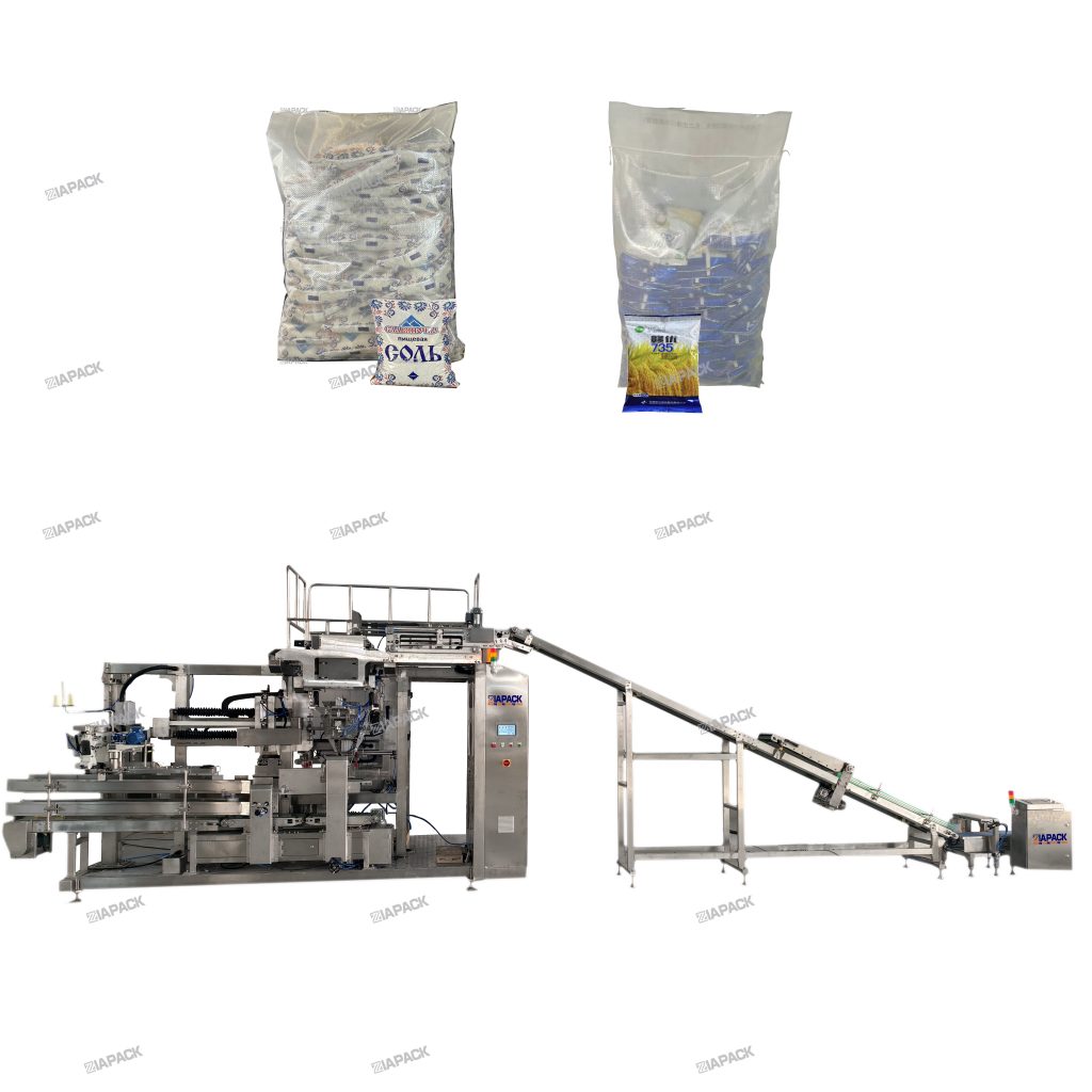 For secondary packaging (auto putting the small pouches into PP woven bag):
