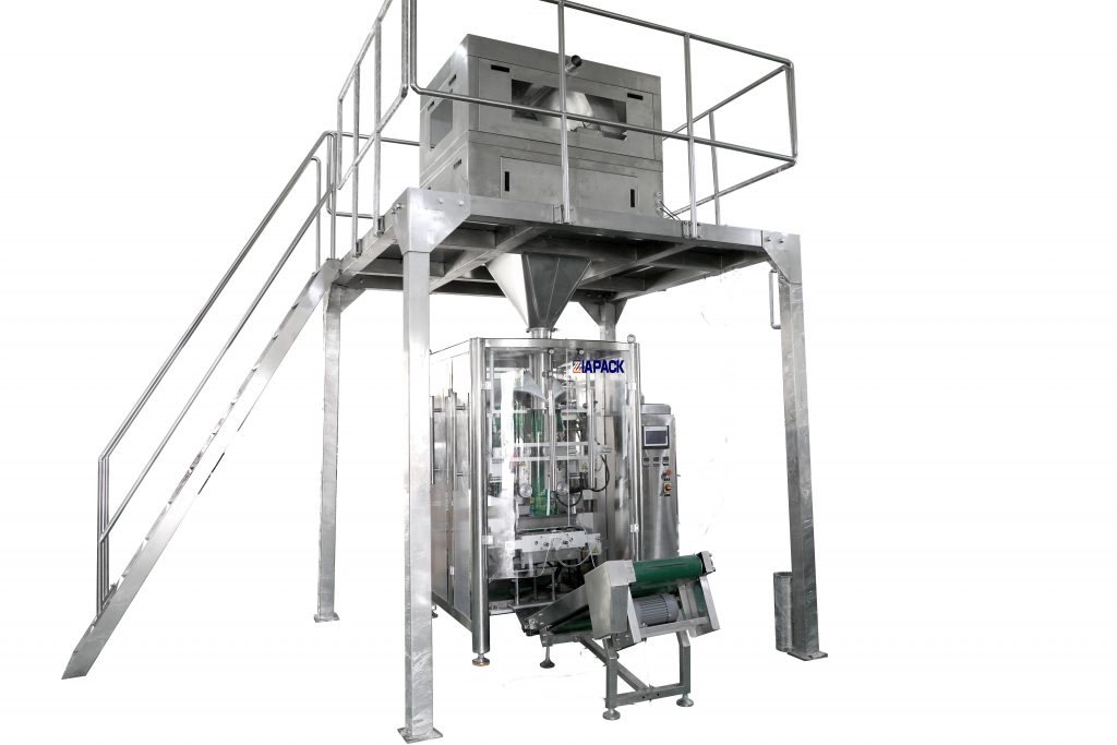 Bộ phận máy này bao gồm một bộ máy đóng gói dạng túi đứng ZL720 và một bộ ZLS-6 Máy cân sáu gầu, một bộ thang máy đứng DT3 và máy băng tải đầu ra. Toàn bộ đơn vị máy có thể đạt đến việc tạo túi tự động, cân sản phẩm, chiết rót sản phẩm niêm phong và mã hóa ngày tháng. Sử dụng rộng rãi để đóng gói đá phiến, bột giặt, gạo, đậu và các sản phẩm dạng hạt khác.