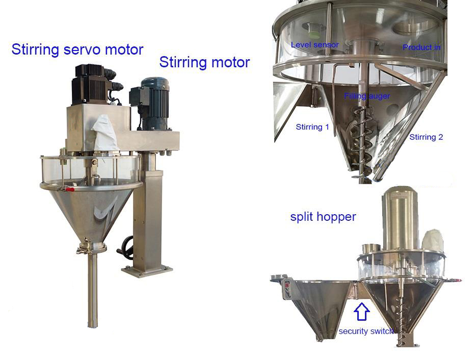 Dòng này Auger Filler trang bị bên phễu mở để dễ dàng làm sạch, bảo trì.
