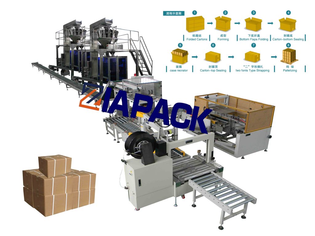- Nó có thể làm việc với máy đóng gói bao bì, máy đóng gói vỏ và máy đóng gói để tạo thành dây chuyền sản xuất bao bì cuối dòng.