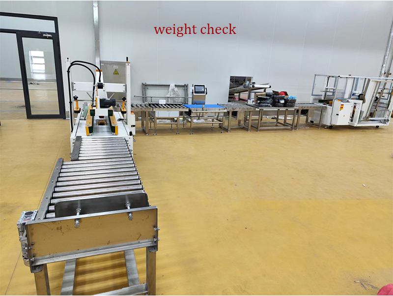 Sau khi đổ đầy thực phẩm đông lạnh vào túi, mỗi túi được kiểm tra lại bằng máy dò trọng lượng để đảm bảo rằng trọng lượng phù hợp với trọng lượng mục tiêu, sau đó đi qua máy dò kim loại để đảm bảo không có kim loại lẫn vào mỗi túi. Các túi sau đó được vận chuyển đến dây chuyền làm đầy thùng carton.