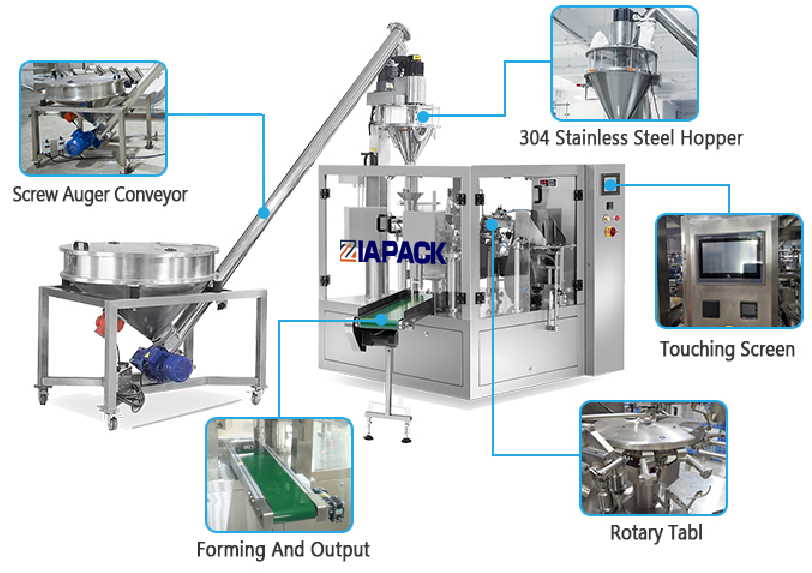 Được trang bị với Augur Filler và Vít Thang Máy, nó được áp dụng rộng rãi để đóng gói bột, chẳng hạn như bột giặt, sữa bột, bột mì, gia vị, coco bột, cà phê xay, và như vậy.