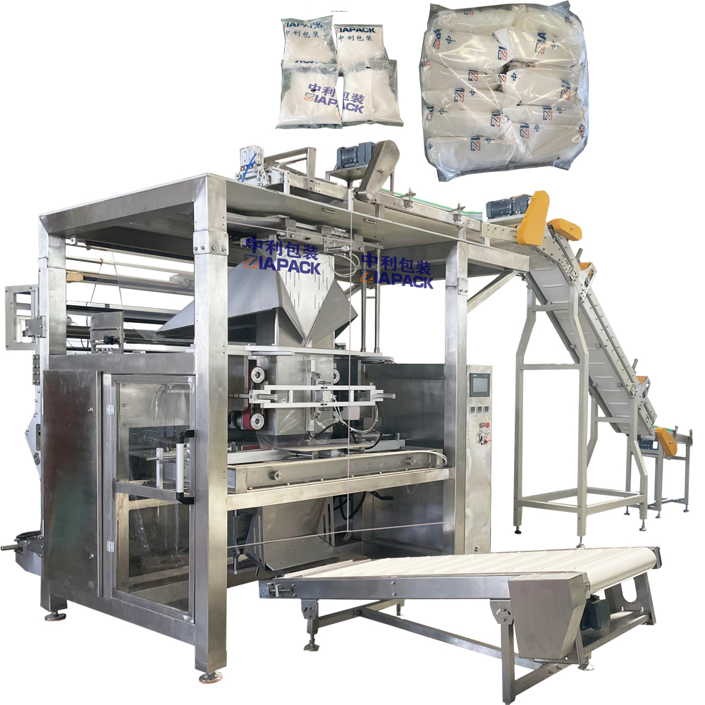 Máy này phù hợp để đóng gói túi nhỏ vào túi lớn. Máy có thể tự động làm túi và đổ đầy túi nhỏ rồi niêm phong túi lớn. Máy này bao gồm các đơn vị dưới đây: