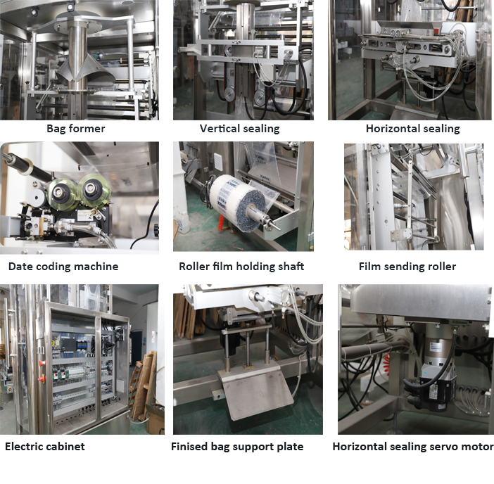 Bộ phận máy này bao gồm một bộ máy hàn kín định hình túi thẳng đứng ZL720 và một bộ máy cân bốn gầu ZLC-5000, một bộ thang máy thẳng đứng DT3 và máy băng tải đầu ra. niêm phong và mã hóa ngày. Sử dụng rộng rãi để đóng gói đá phiến, bột giặt, gạo, đậu và các sản phẩm dạng hạt khác.